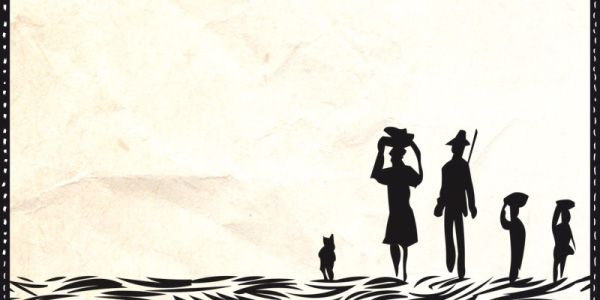 A caminhada é longa e eles estão famintos e cansados. Urubus rodeiam a família, na esperança de que um deles caia morto e sirva como uma boa refeição.