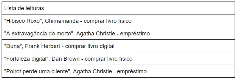 2 - Faça uma lista de leituras